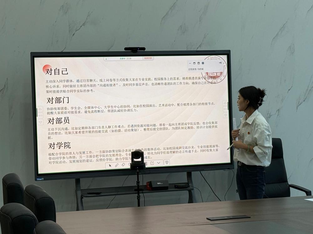 随后,表演艺术学院张志远书记结合述职情况与竞选表现,围绕学生会工作中的重点难点问题与大家深入交流。无论是在岗负责人还是干事们,都沉着应对、条理清晰地阐述观点,展现出良好的应变能力与问题解决能力,现场掌声阵阵。