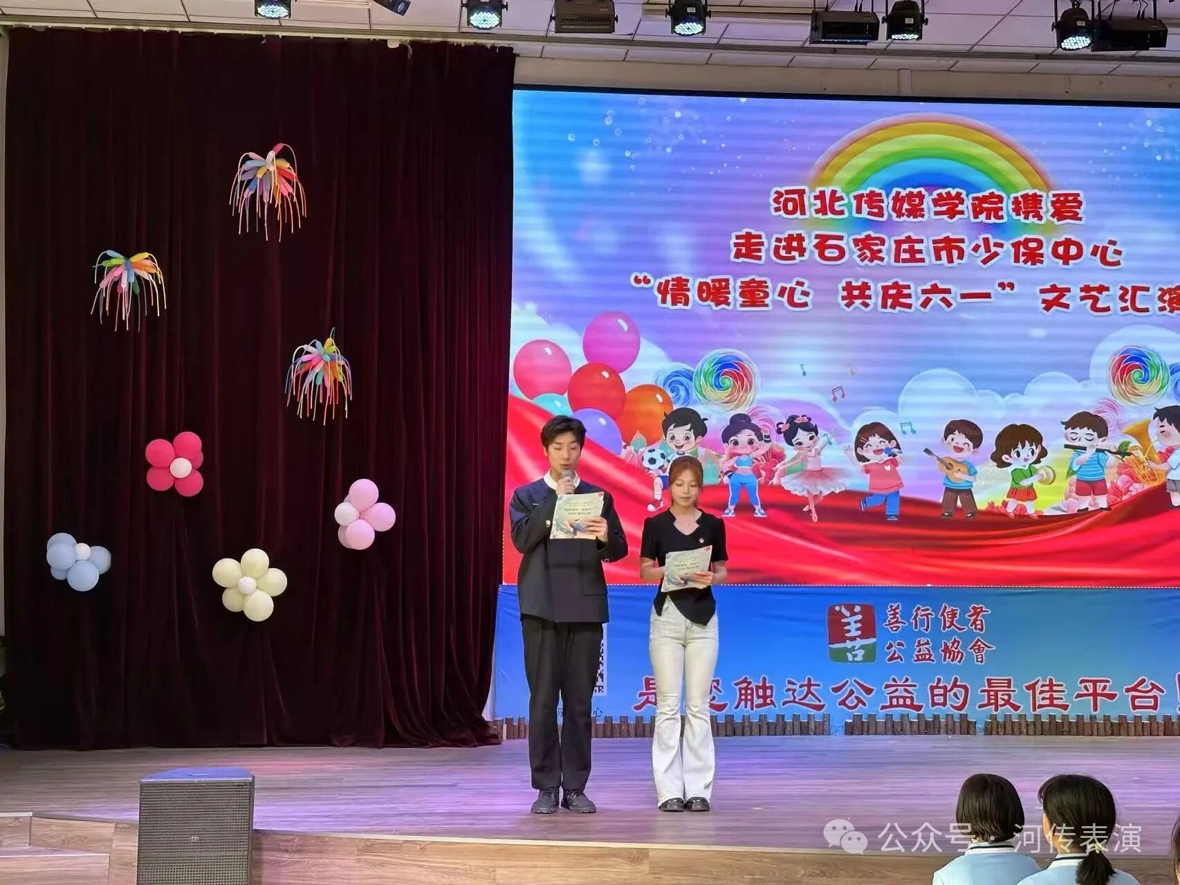 6月6日,表演艺术学院的学子们走进石家庄市少保中心,为孩子们带来了一场精彩纷呈的“六一”文艺汇演。出席本次活动的有石家庄市少保中心主任杨程,河北传媒学院副校长高晓峰,及河北传媒学院警安校区各党总支书记和团委书记