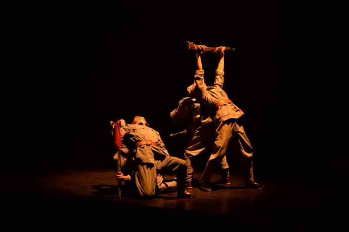 这番对话让我们对创作有了更深的思考。观演后,我们决定将专业思考融入创作,以井冈山精神为内核打造小品片段。构思阶段便明确:要让历史精神通过戏剧张力落地—— 用 "一根灯芯" 的微光设计演员的呼吸节奏,以肢体语汇外化 "艰苦奋斗" 的克制与坚韧;借 "朱德的扁担" 的往返调度,通过集体表演的节奏变化凸显 "官兵一致" 的平等意识;在百姓送别场景中,着重打磨眼神交流的层次,让 "军民同心" 从口号转化为可感知的情感流动。我们深知,表演的使命不是复刻历史,而是用专业技巧让观众在共情中触摸精神本质。