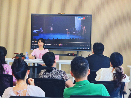 培训课程围绕剧本围读、角色分析、角色情感表达、观演关系处理等核心内容展开。常玉红老师首先以经典剧目《叶普盖尼·奥涅金》的片断为例,深入浅出地讲解了表演中“艺术真实”的创作理念与方法,强调戏剧张力在叙事表达中的关键作用,指出高校表演教师通过舞台实践反哺教学的重要意义。