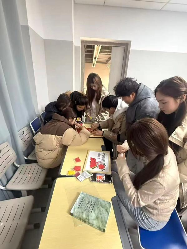 活动中,团支部成员围坐在一起,一边聆听团支部书记王云欢讲解宪法的核心要义,一边对照“实木画框+彩色底稿”的材料包动手创作:有的用红豆拼出国徽轮廓,有的用绿豆点缀“依宪治国”“强国有我”字样,还有的将不同谷物组合成“宪法守护成长”的主题画面。