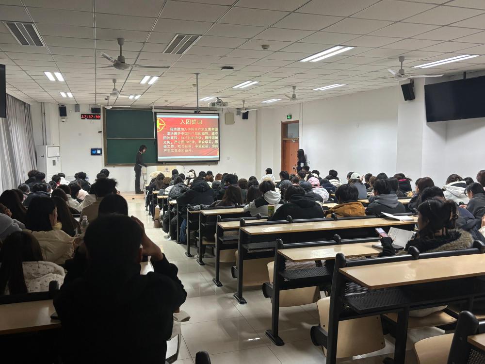 为深入学习贯彻党的二十大精神,加强共青团基层组织建设,增强思想政治引领,11月3日,我院在教学楼b127开展了2025-2026学年第一期团课培训,本次活动由王薪雅同学主讲,2025下半年入团积极分子全体参加。
