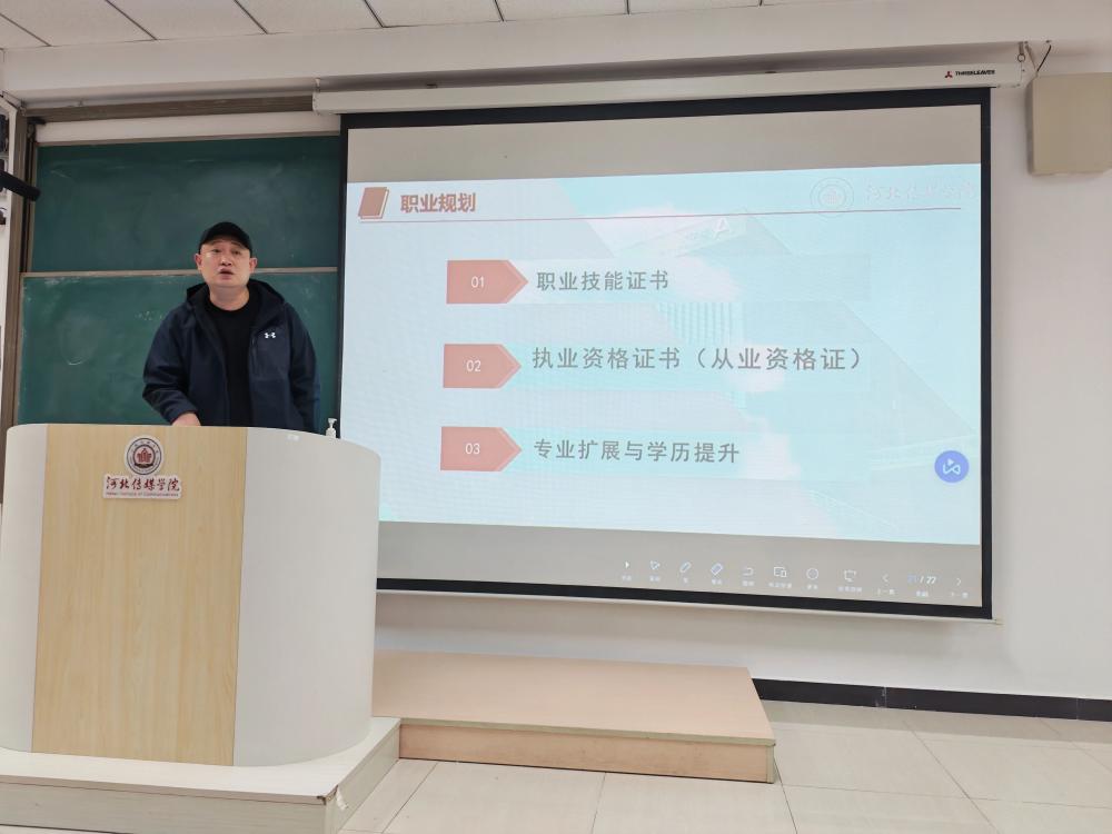 交流中,老师以“职业技能证书的价值与报考” 为起点,系统讲解了职业技能等级证书与专项职业能力证书的核心差异——前者包含商业摄影师、电子商务师等高级证书,后者涵盖心理健康指导、图形图像处理等实用方向,两类证书均全国通用、长期有效,且报考门槛贴合在校生需求(职业技能等级证书面向在读应届毕业生,专项职业能力证书面向专科以上在校生)。同时,老师还介绍了工信部推出的人工智能内容生成师、AIGC工程师等新兴证书,引导表演专业学生结合行业趋势拓展技能边界。