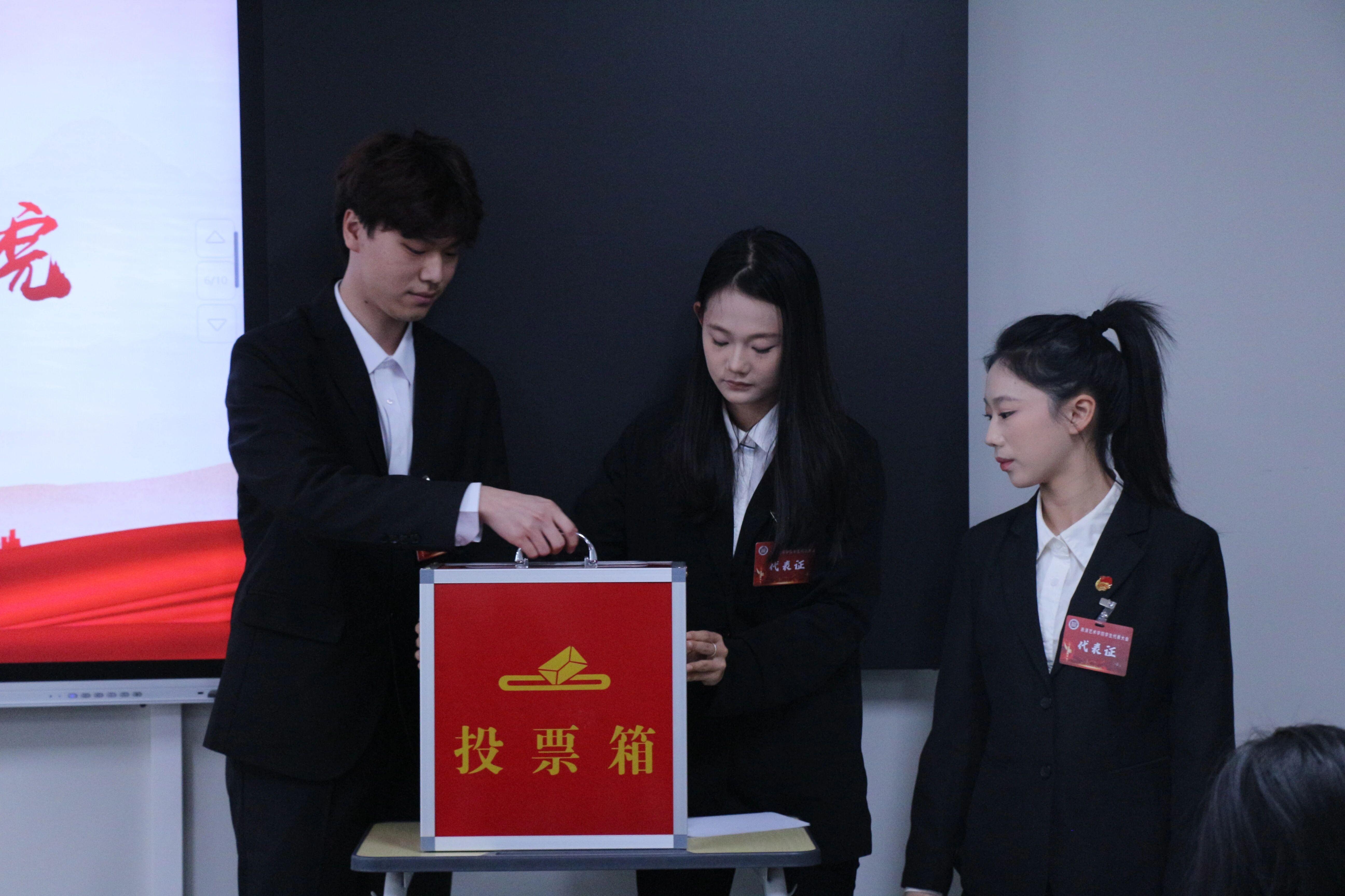会议进入核心环节,学生代表以高度的使命感和责任感,郑重投票选举第三次学生委员会委员。选举计票间隙,大会特别安排《青春中国》主题诗朗诵环节,学子们深情激昂的演绎既展现表演艺术学院专业育人成效,更彰显新时代青年坚定的理想信念与责任担当,充分践行立德树人育人目标。经匿名投票选举,陈熙远、王静等九名同学成功当选为新一届学生委员会委员。